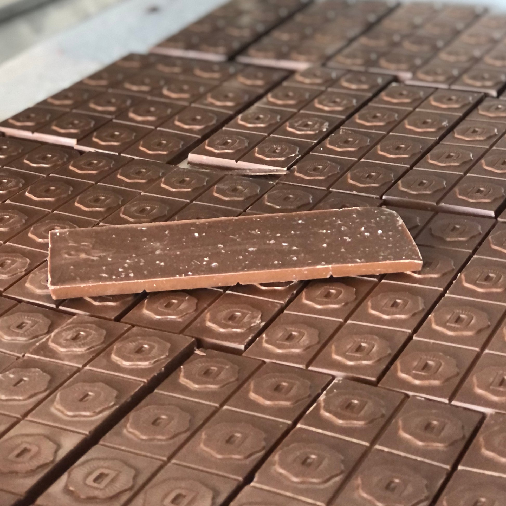 MILK SEA SALT: pure milk chocolate (sugar, whole milk, cocoa butter, unsweetened chocolate, soy lecithin, vanillin)