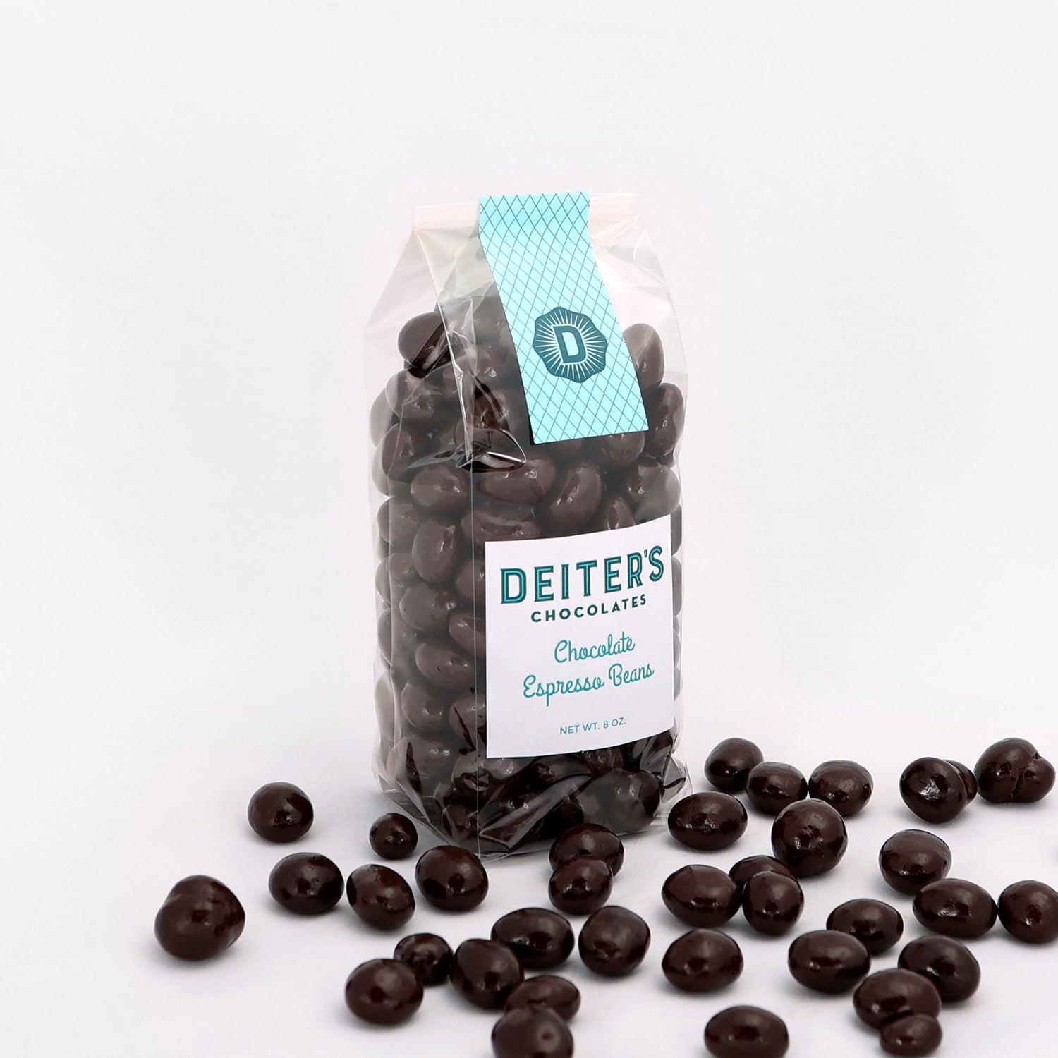 Coffee and Chocolate: Done. Get the perfect pick-me-up by snacking on our rich espresso beans coated in dark chocolate. 8 oz. bag.