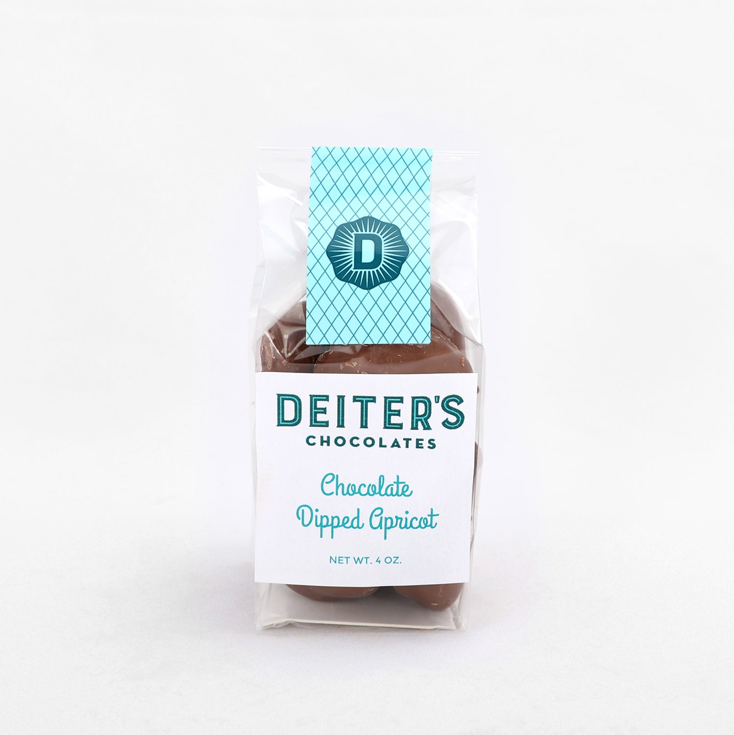 Our dried apricots are a little chewy, sweet and fruity to start, then made amazing with a coating of gourmet chocolate. 4 oz. bag available in milk or dark chocolate.