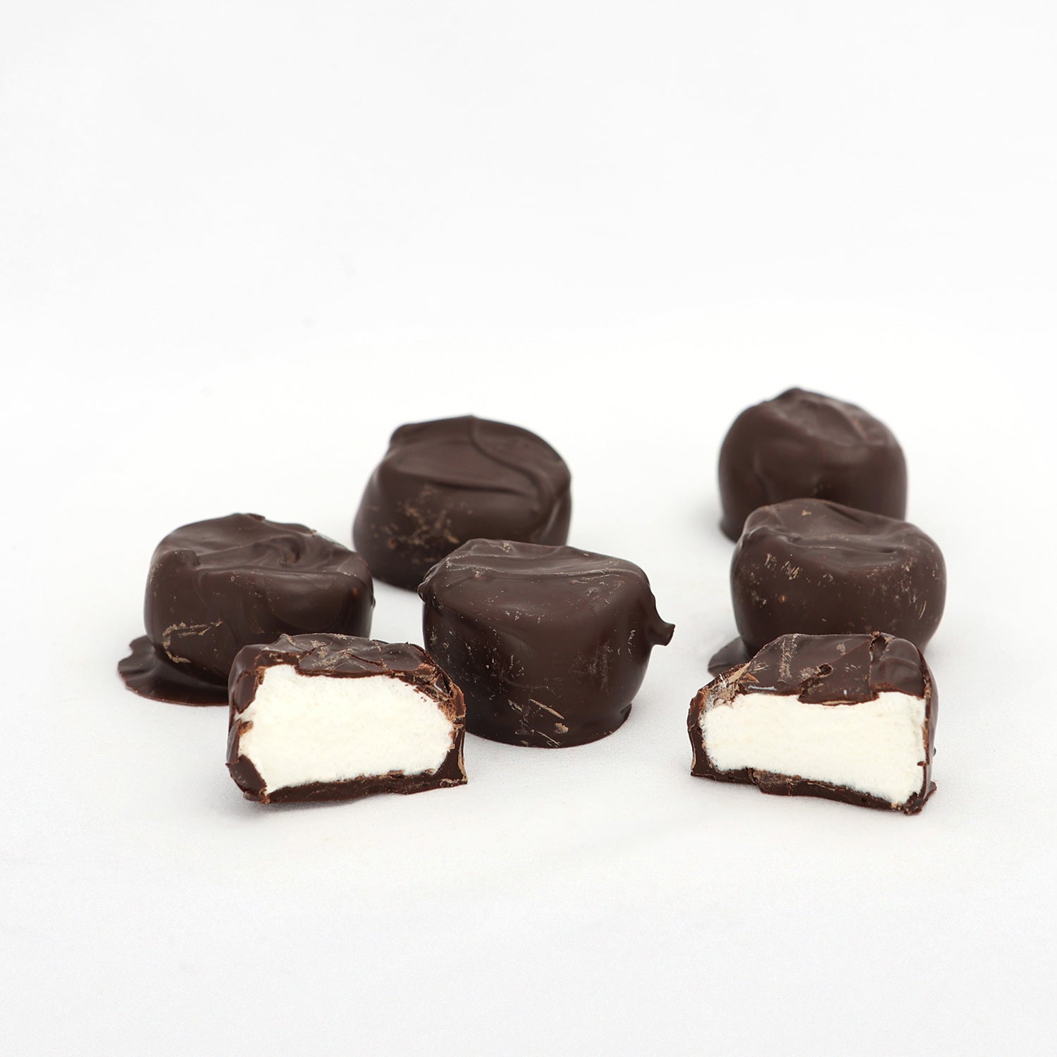 DARK: semi-sweet chocolate ( unsweetened chocolate, sugar, cocoa butter, butter, sunflower lecithin, vanilla) corn syrup, sugar, dextrose, modified cornstarch, water, contains less than 2% of gelatin, tetrasodium, pyrophosphate, natural & artificial flavor, blue 1