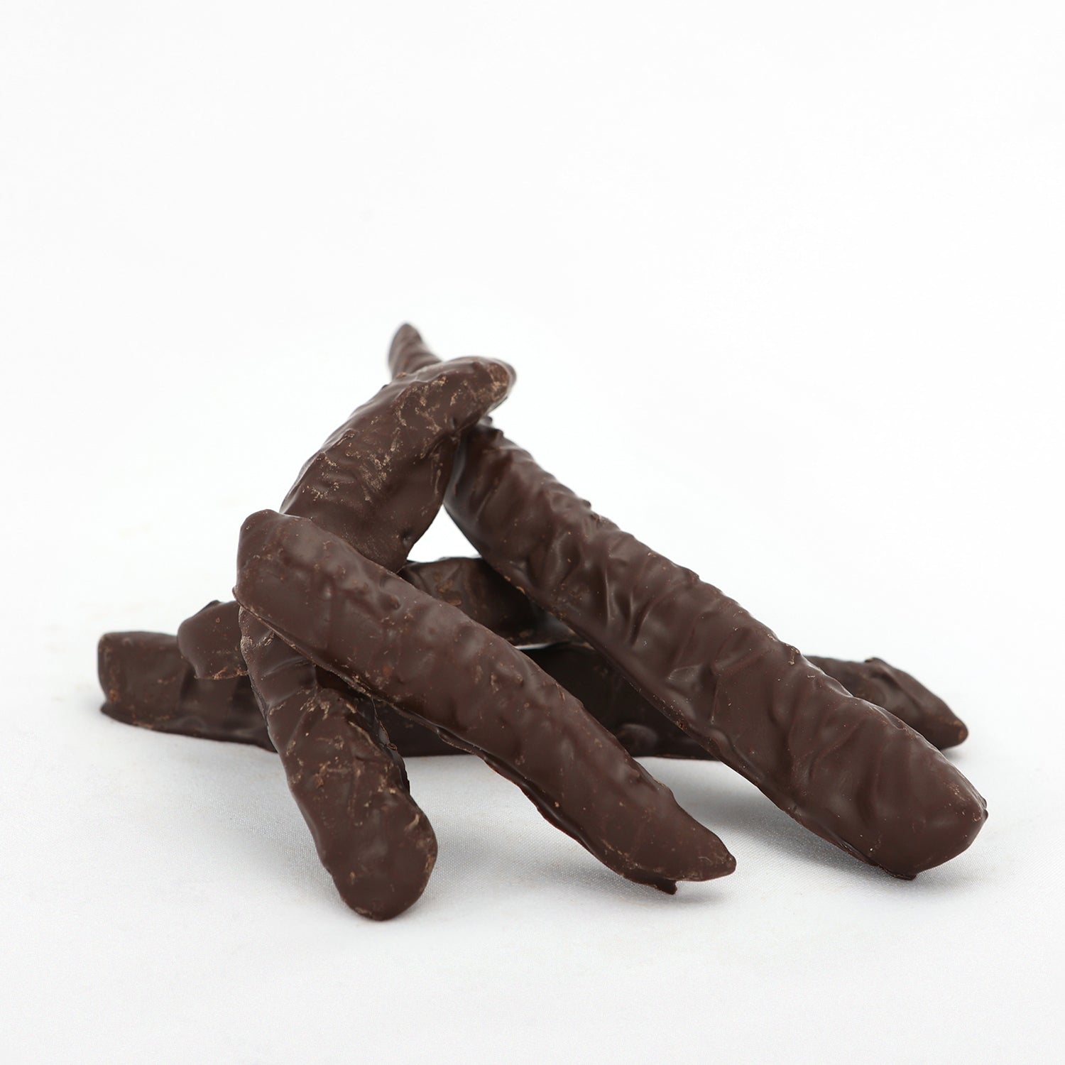 Sweet and tangy with a satisfying texture, our dipped orange peel is a customer favorite, year 'round. 4 oz. bag in dark chocolate.