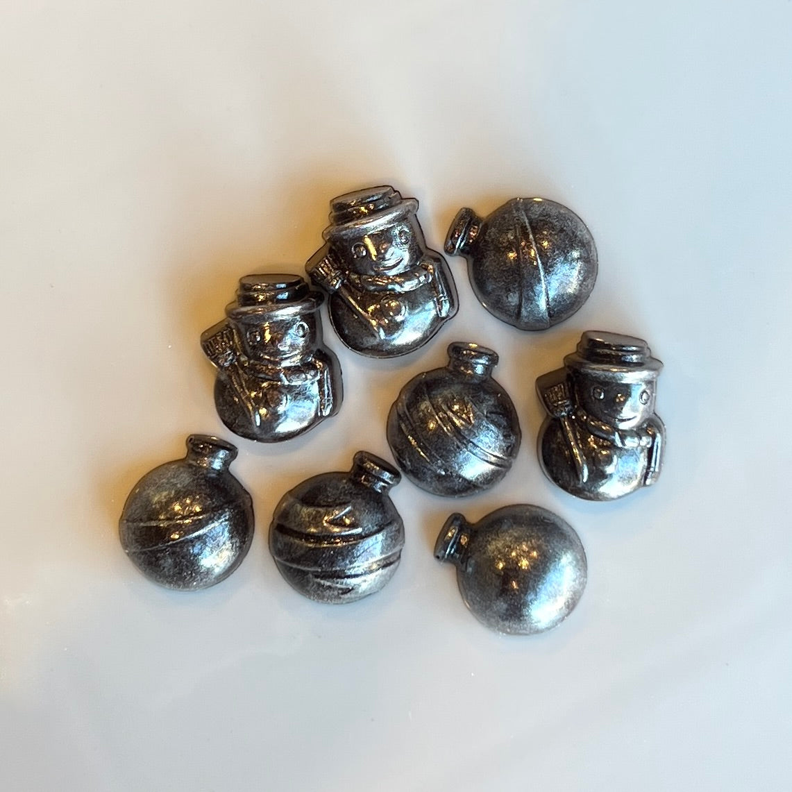 These tasty minuettes feature a creamy peanut butter filling, in the shape of little snowmen and ornaments. 6-oz. bag in your choice of milk or dark chocolate.