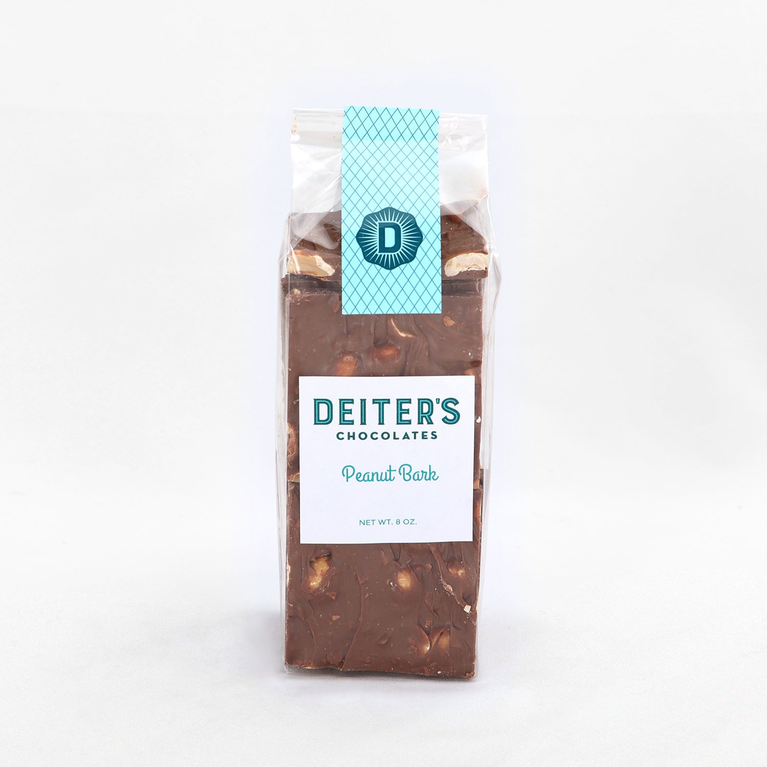 Peanuts and chocolate perfection, all wrapped up in a bag of our delicious peanut bark. Milk or dark chocolate in an 8 oz. bag. Sorry, but we are currently sold out of milk chocolate.